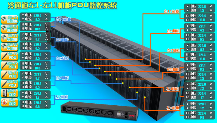智能pdu监控是通过智能PDU的通讯接口来读取监控数据,PDU监控数据有电流,电压,功率,电能,如果支持控制功能还可以远程控制某支路的开与关。